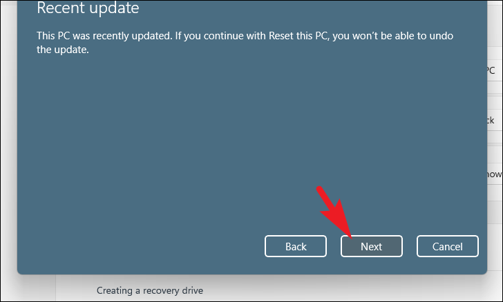 Step 9: Back on the main reset window, click 'Next' to proceed.