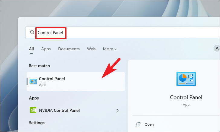 Step 1: Open the Start Menu and type Control Panel into the search bar. From the results, click on the 'Control Panel' app to launch it.