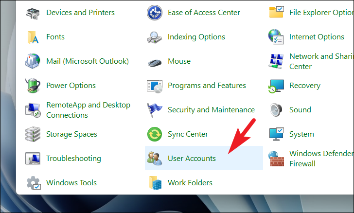 Step 2: In the Control Panel window, find and click on the 'User Accounts' option.