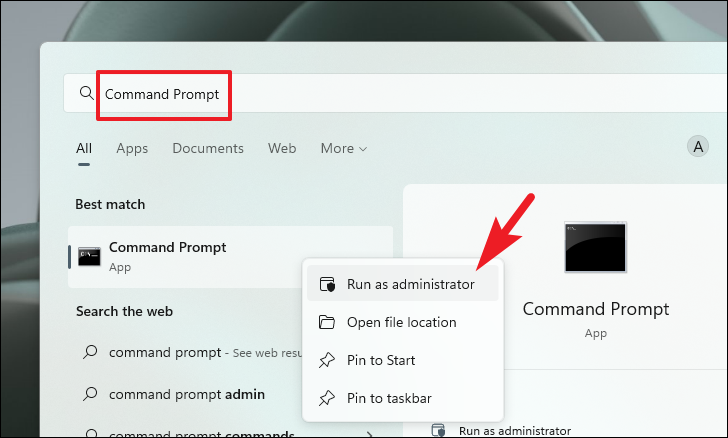 Step 1: Open the Start Menu and type CMD. Right-click on 'Command Prompt' in the search results and select 'Run as administrator'.