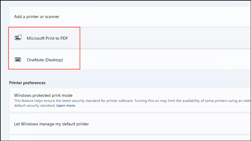- First, you need to remove all extra printers you don't use. Open the 'Printers and scanners' page in the Settings app as explained previously.
