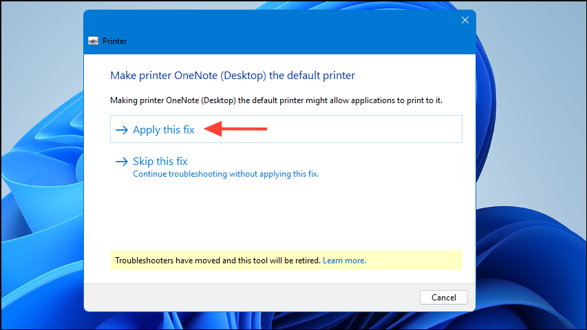 - If the troubleshooter suggests a fix, click on 'Apply this fix' and then try to use the printer to print something.