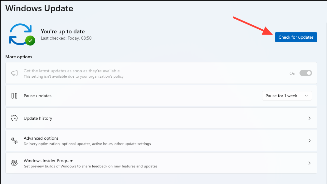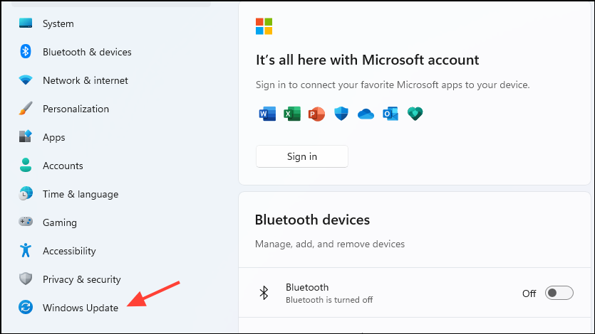 - Open the Settings app and click on 'Windows Update' on the bottom left.