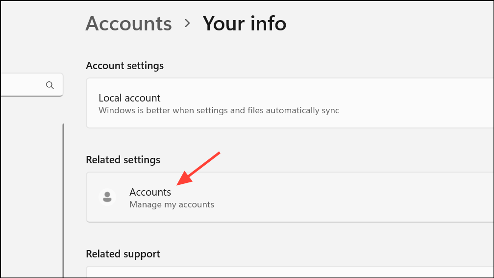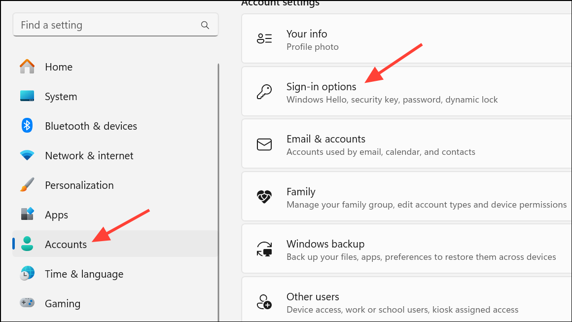 Step 2: Navigate to Accounts in the sidebar, then select Sign-in options.