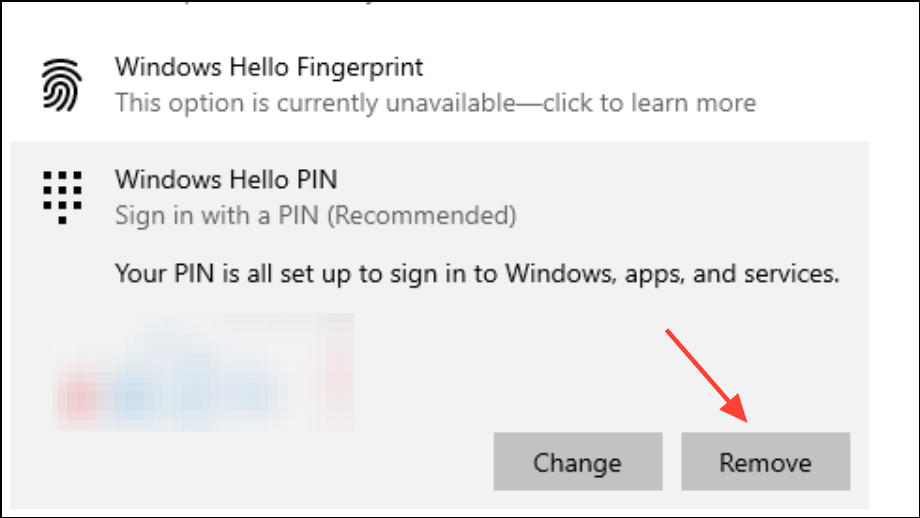 Step 4: Restart your computer. After rebooting, revisit the Sign-in options page in Settings and check if the PIN Remove button is now enabled.