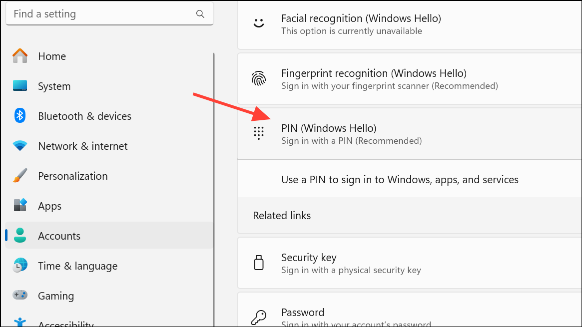 Step 1: Go to Settings > Accounts > Sign-in options. Expand the PIN (Windows Hello) section.