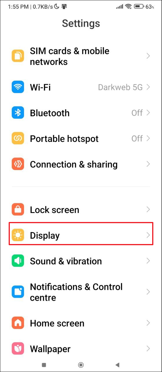 - Open the Settings app and tap on 'Display'.