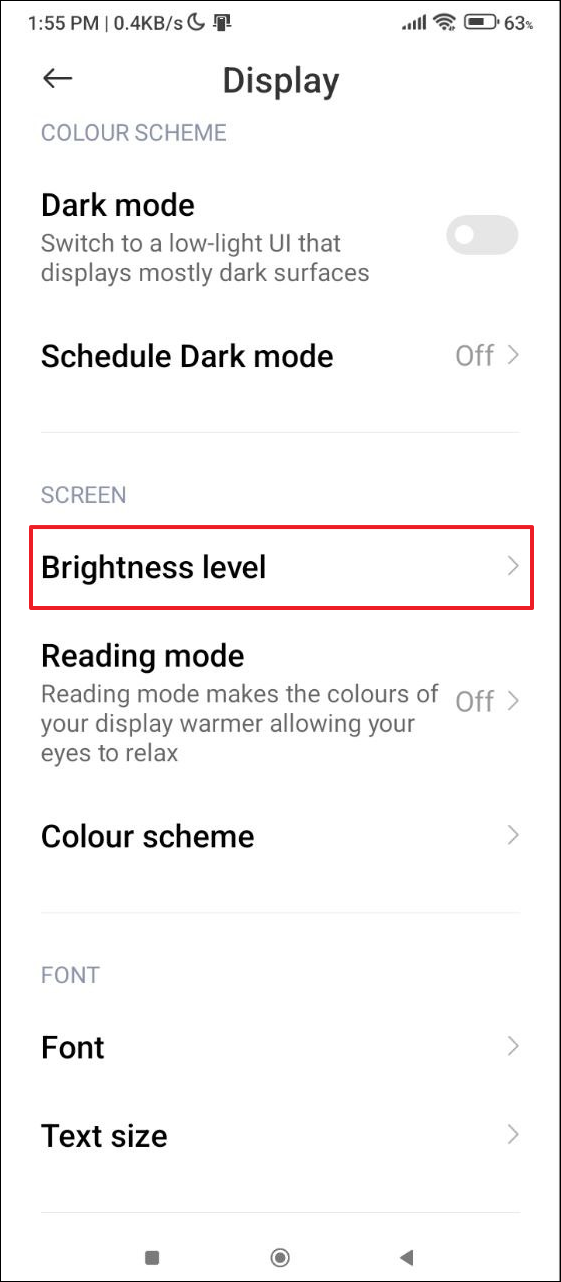 - Then tap on 'Brightness level'.