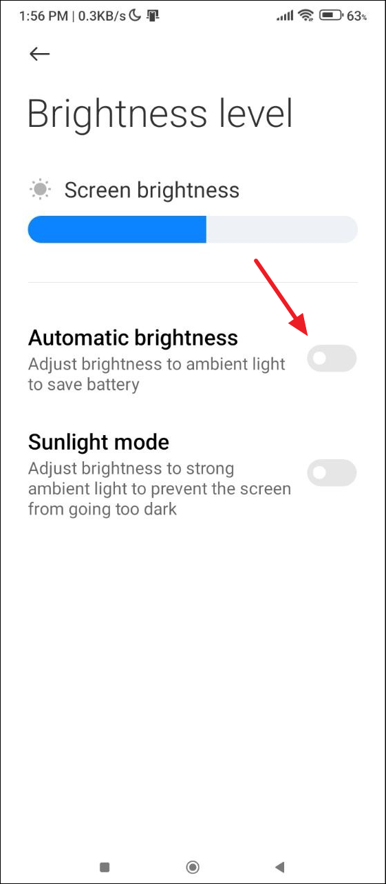 - Now, tap on the 'Automatic brightness' toggle and turn it off.