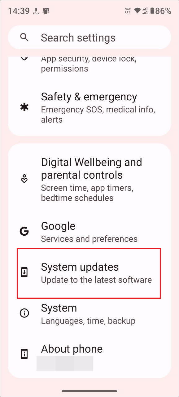 - Open the Settings app and tap on 'System updates'.
