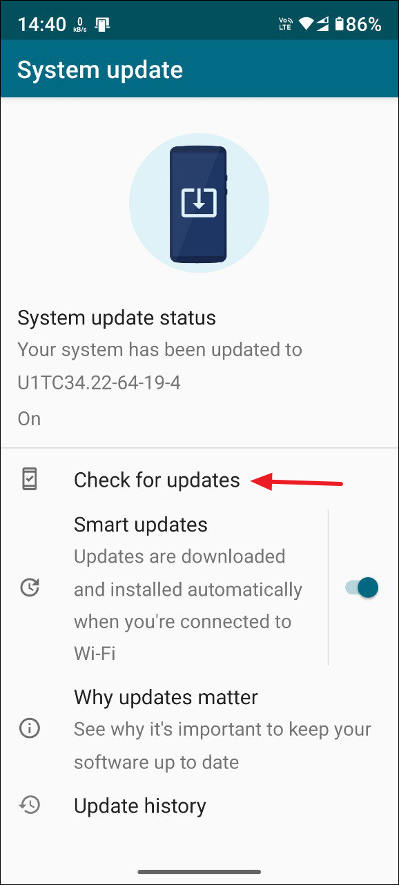 - On the System Update page, tap on 'Check for updates'. If updates are available, your device will download and install them. Reboot your device and check whether the screen is still flickering.