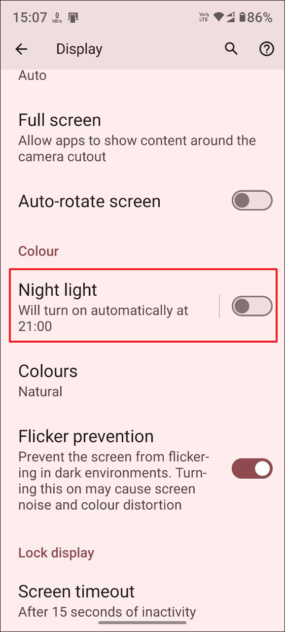 Enabling the Blue Light Filter or Night Light can also sometimes cause the screen of your Android device to flicker. You can turn it off temporarily and check if that helps.