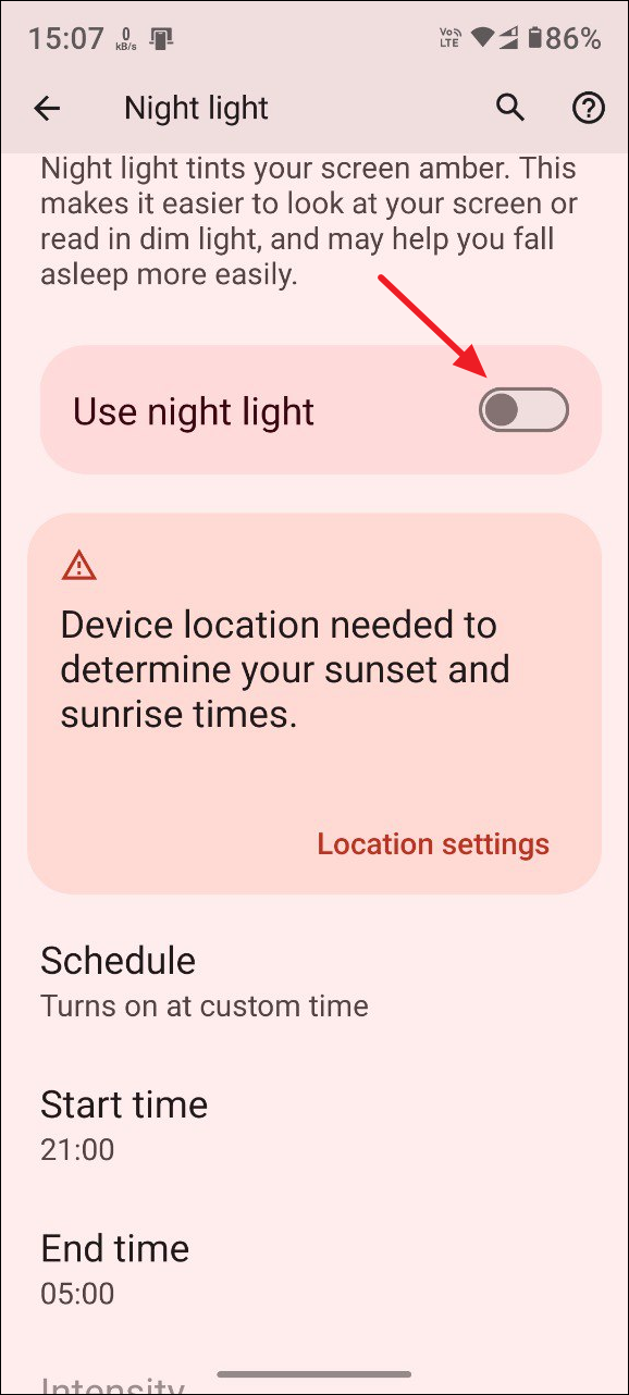 - Then tap on the toggle for the 'Night Light' option and turn it off.