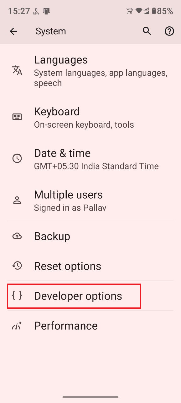 - Now go back and you will see a new 'Developer Options' setting. It may be present within 'System' or a similar section. Tap on it.
