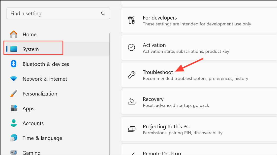 Step 1: On Windows 11, click the Start button, then go to Settings > System > Troubleshoot.