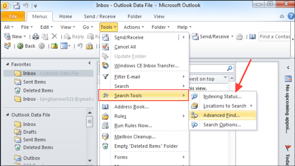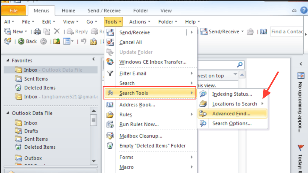 Step 2: Next, select Search Tools > Locations to Search and confirm that all relevant data files are checked. If your main mailbox or archives are not selected, Outlook will not search them.