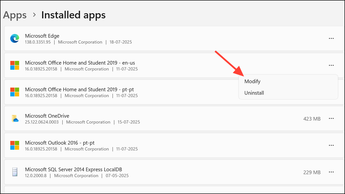 Step 2: Locate Microsoft Office, select Modify, and choose Online Repair for a comprehensive repair. Follow on-screen instructions. This process repairs corrupted program files that may impact Outlook’s search.