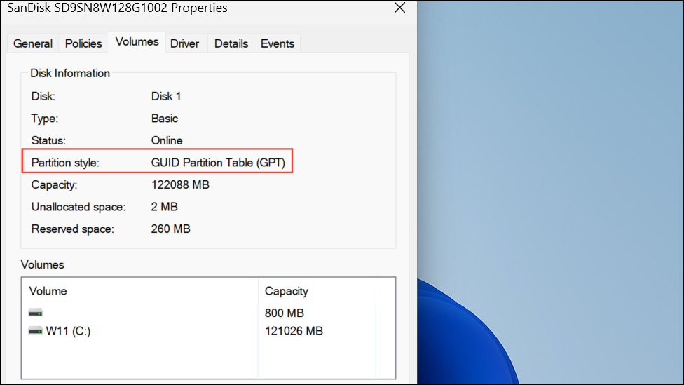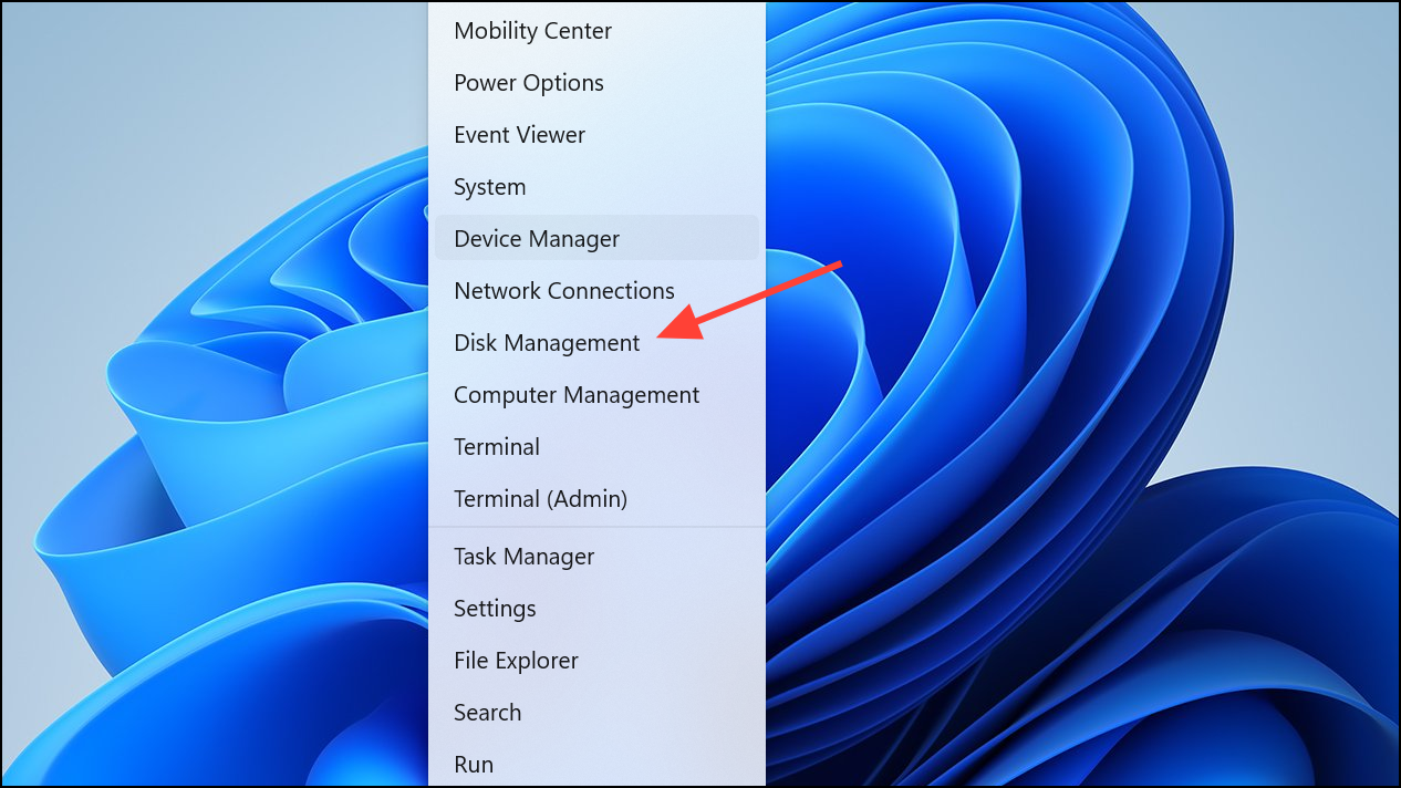 Step 3: Confirm your boot drive uses the correct partition style. Press Windows Key + X and select Disk Management.