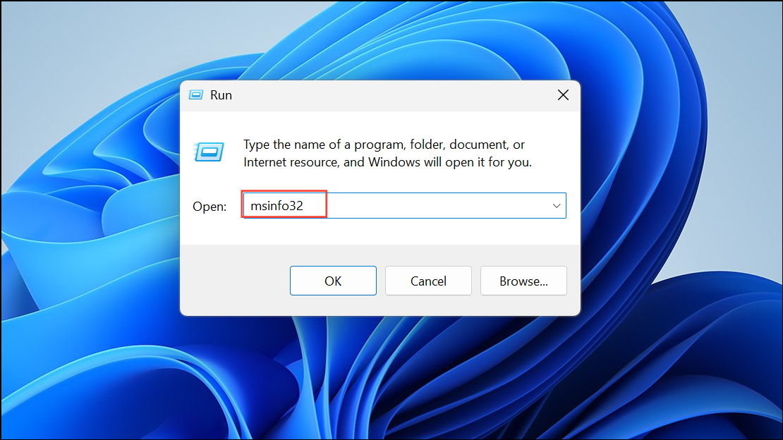 Step 1: Open the System Information tool by pressing Windows Key + R, typing msinfo32, and pressing Enter.
