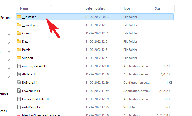 Step 4: Inside the game folder, locate and open the _Installer folder.