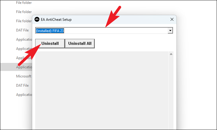 Step 6: In the Anti-Cheat installer window, select the affected game from the drop-down menu, and click on 'Uninstall'.