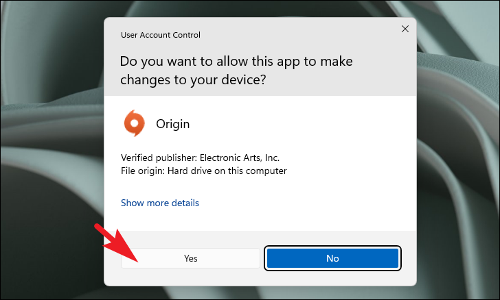 Step 4: A User Account Control (UAC) prompt will appear. If you're logged in as an administrator, click 'Yes' to proceed. If not, enter the administrator credentials and click 'Yes'.