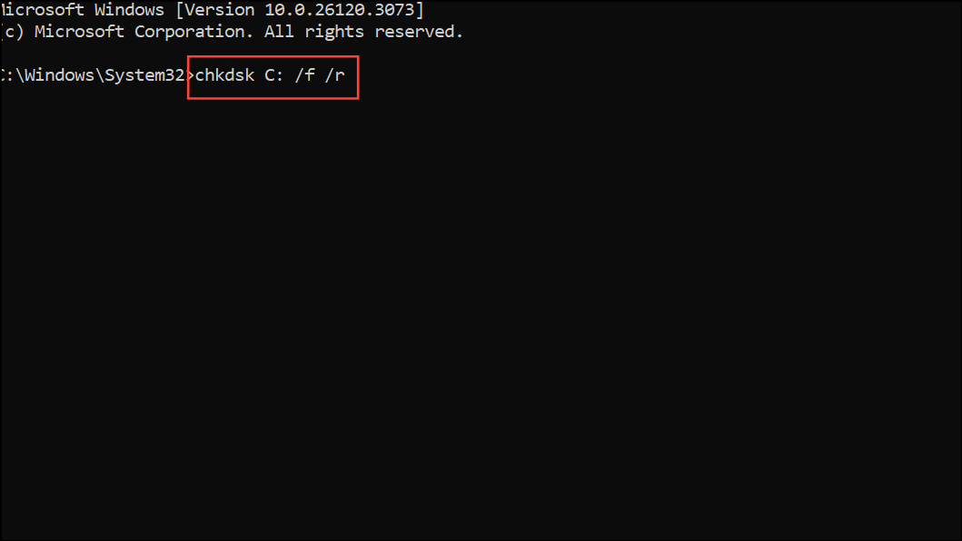Step 3: Check your hard drive for errors. Boot into Windows Recovery Environment or use a live USB, open Command Prompt, and run: