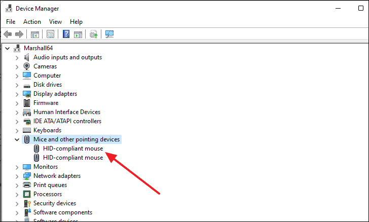 - In the Device Manager window, expand Mice and other pointing devices, right-click on your mouse device, and select Properties.
