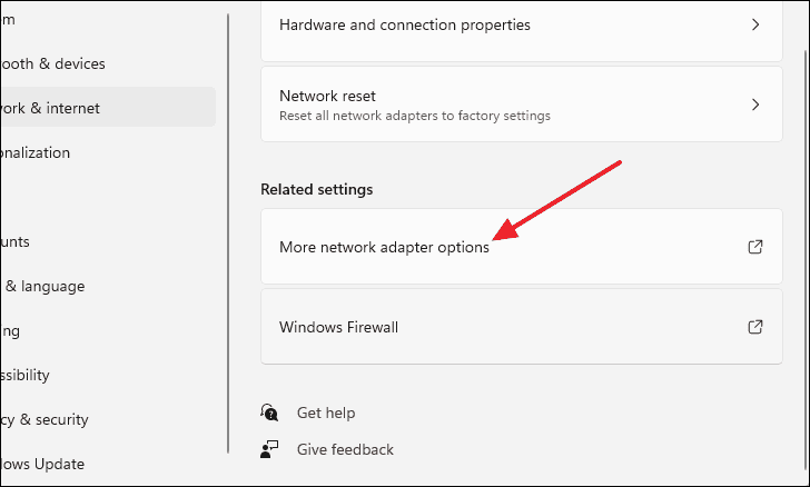 - Click on More network adapter options.