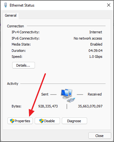 - In the Status window, click on Properties.