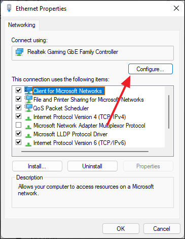 - In the Properties window, navigate to the Power Management tab and uncheck Allow this device to wake the computer.