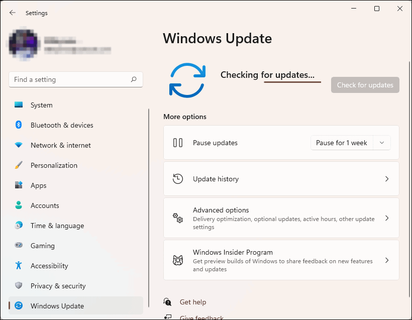Windows+i. - Select Windows Update from the left panel and click on Check for updates.