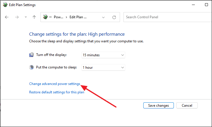 - Click on Change advanced power settings.