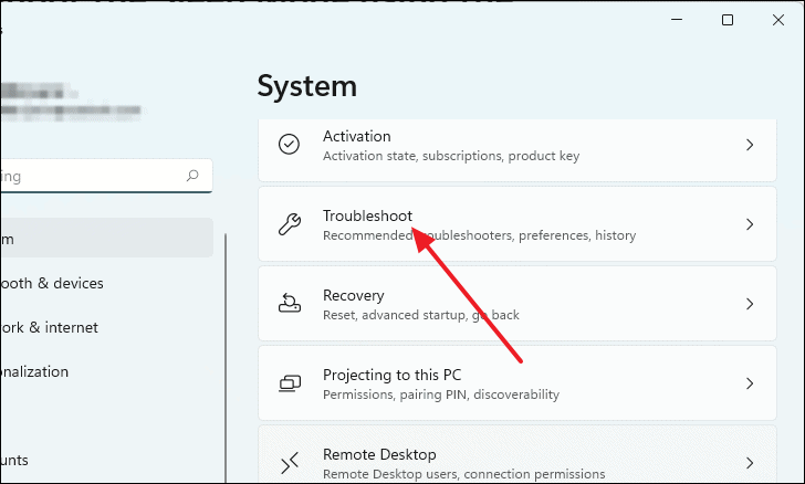 - Scroll down on the right panel and select Troubleshoot.