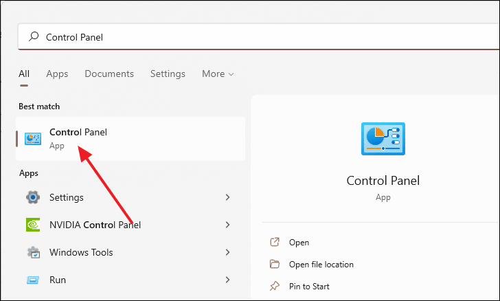 - Open the Control Panel by searching for it in the Windows search bar.