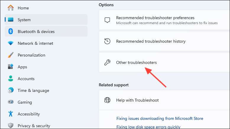 Step 1: Open Settings and go to System, then select Troubleshoot and click Other troubleshooters.
