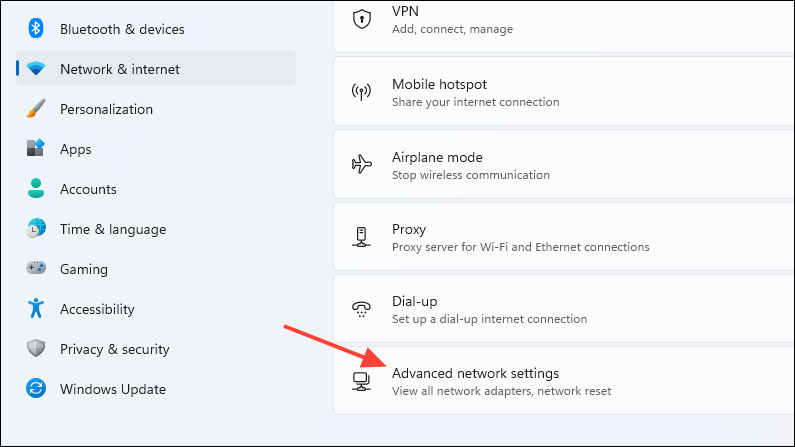 Step 1: Go to Settings > Network & Internet > Advanced network settings.
