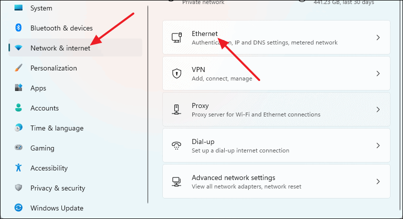 Settingsapp. - Select Network & internet from the left pane, then click on Ethernet.