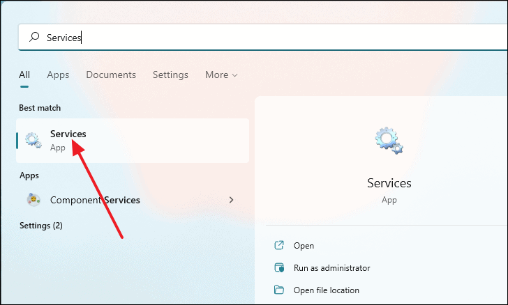 Servicesin the Windows search bar and open the Services app.