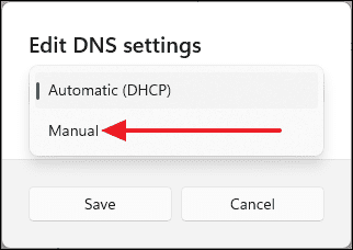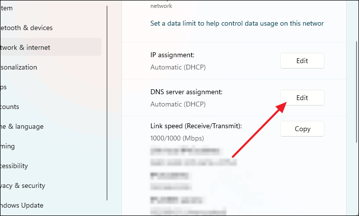 - Click the Edit button next to DNS server assignment.