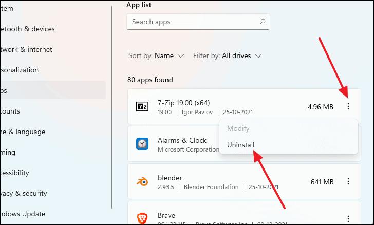 - Click the three dots next to it and select Uninstall.