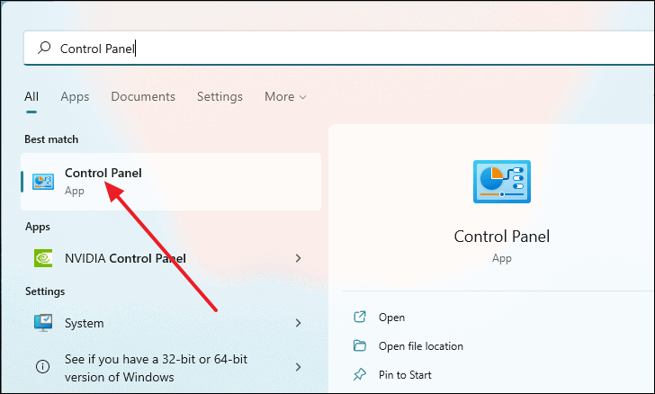 - Open Control Panel by searching for it.