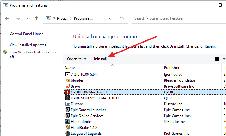 - Select your VPN client and click Uninstall on the toolbar.