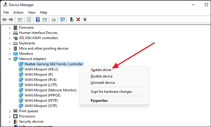 2. Manually Update Network Driver Using Device Manager
