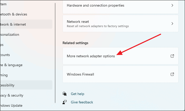 - Click on More network adapter options.