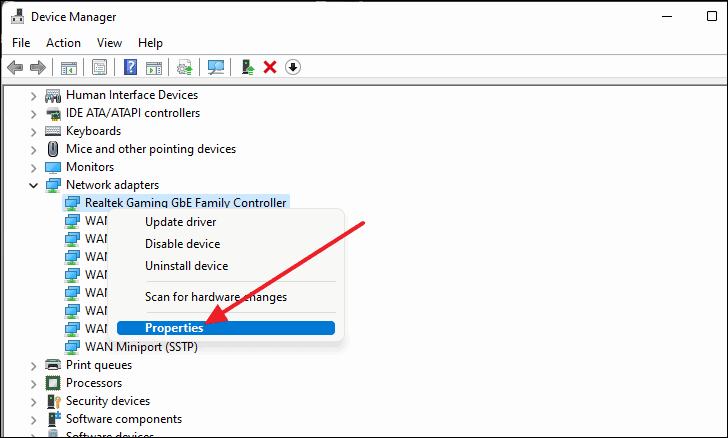 - Right-click on your network adapter and select Properties.