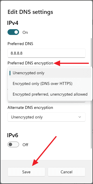 - Optionally, set Preferred DNS encryption to Encrypted only.