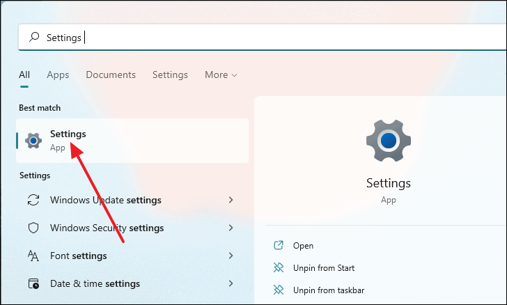 Settingsapp by typingSettingsin the Windows search bar and selecting it.