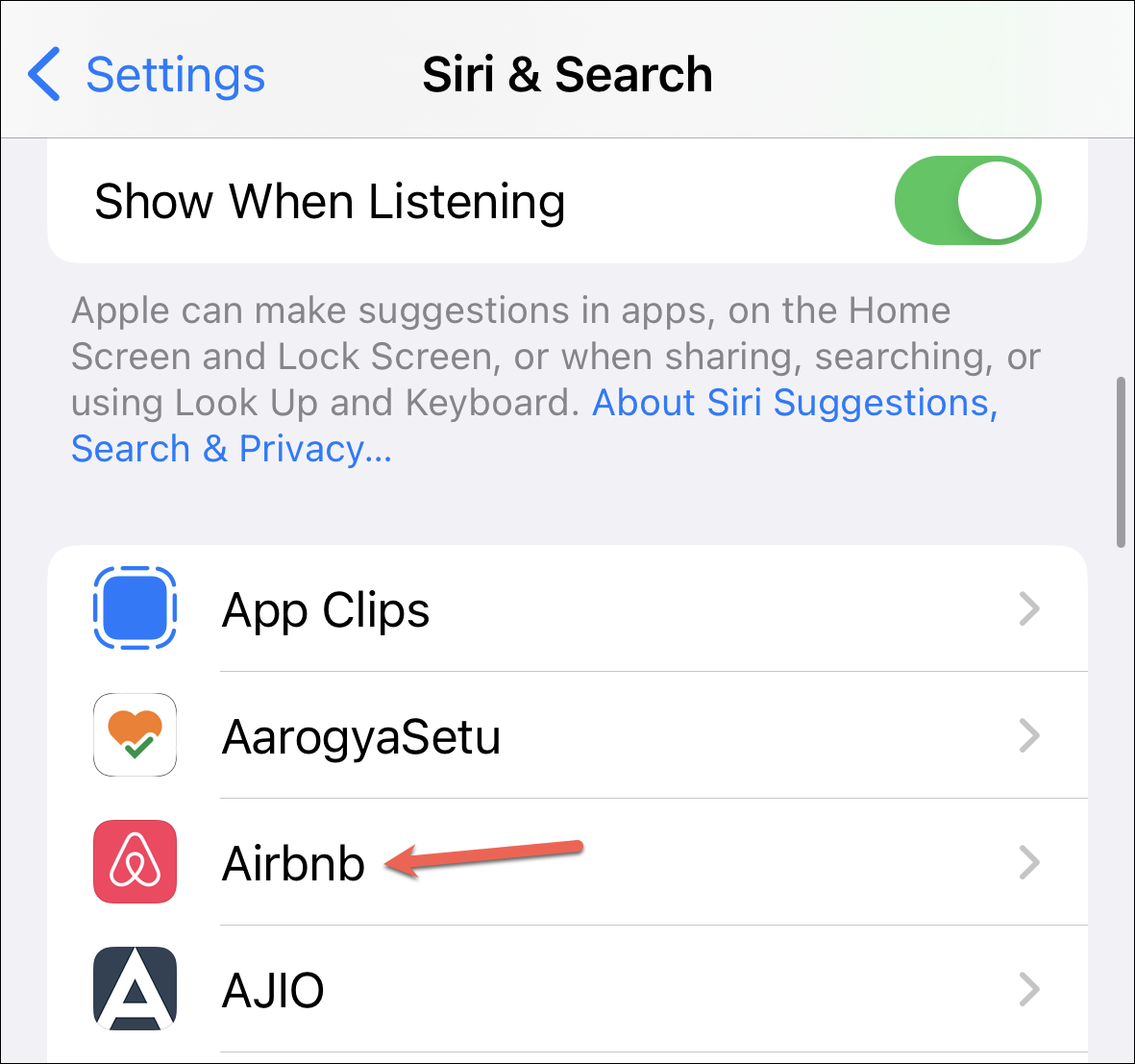 Open the Settings app on your iPhone and go to ‘Siri & Search’.