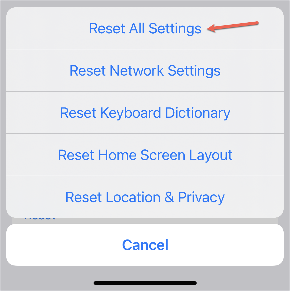Select ‘Reset All Settings’ from the menu and proceed with any instructions on the screen.